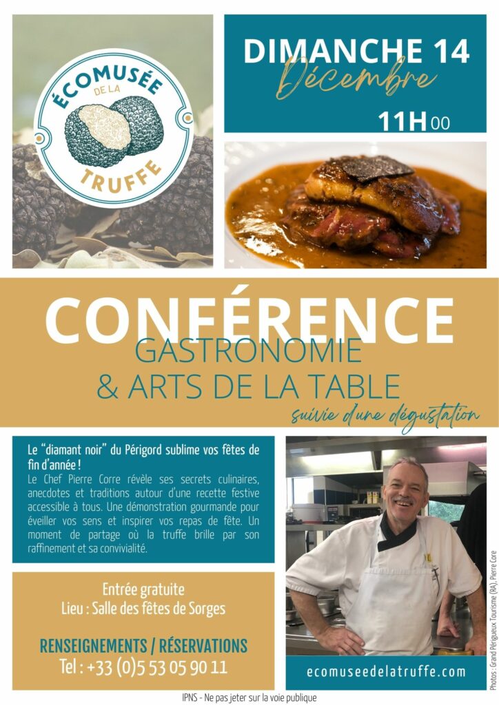 La truffe, véritable diamant noir du Périgord, s’invite à la table de Noël Lors de cette conférence, le Chef Pierre Corre partagera sa passion et son savoir-faire autour de la cuisine festive. Entre anecdotes gourmandes, secrets de préparation et traditions culinaires, il vous fera voyager au cœur de l’art de vivre à la française. Le…