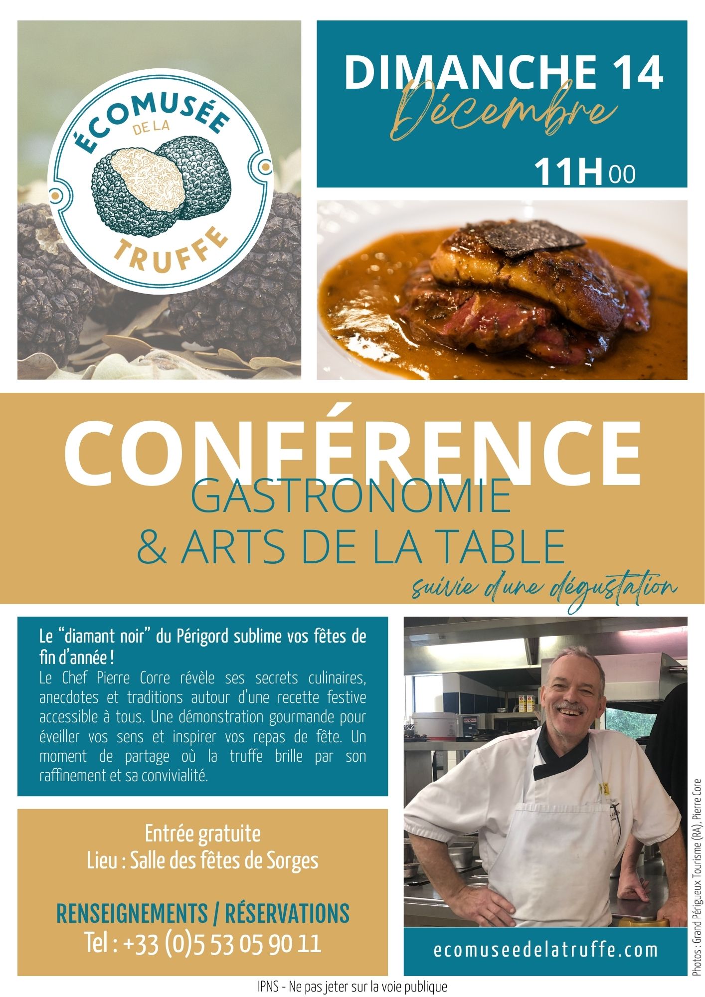 Lors de cette conférence, le Chef Pierre Corre partagera sa passion et son savoir-faire autour de la cuisine festive. Entre anecdotes gourmandes, secrets de préparation et traditions culinaires, il vous fera voyager au cœur de l’art de vivre à la française.